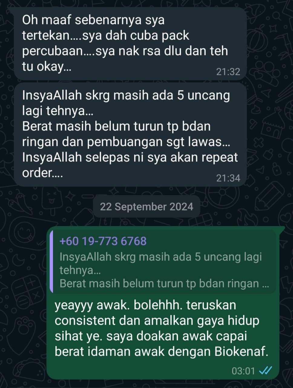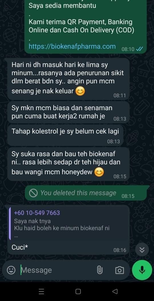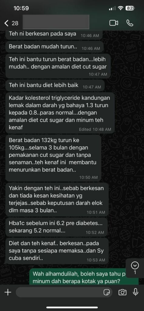 Kesan Dialami Pengguna Biokenaf Seawal 28 Hari Melalui Temubual Whatsapp