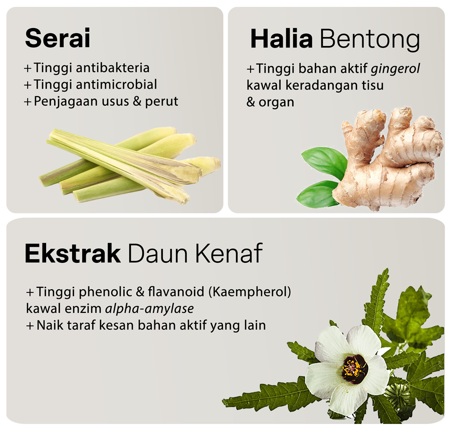 Biokenaf® diformulasi untuk target halang alpha-amylase dari memecahkan karbohidrat kepada gula & hentikan pembentukan lemak & triglycerides di hati.